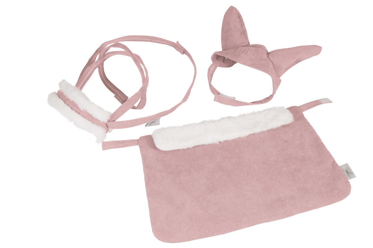 De set is gemaakt van heerlijk zacht corduroy met pluche op zowel het deken als de halster.