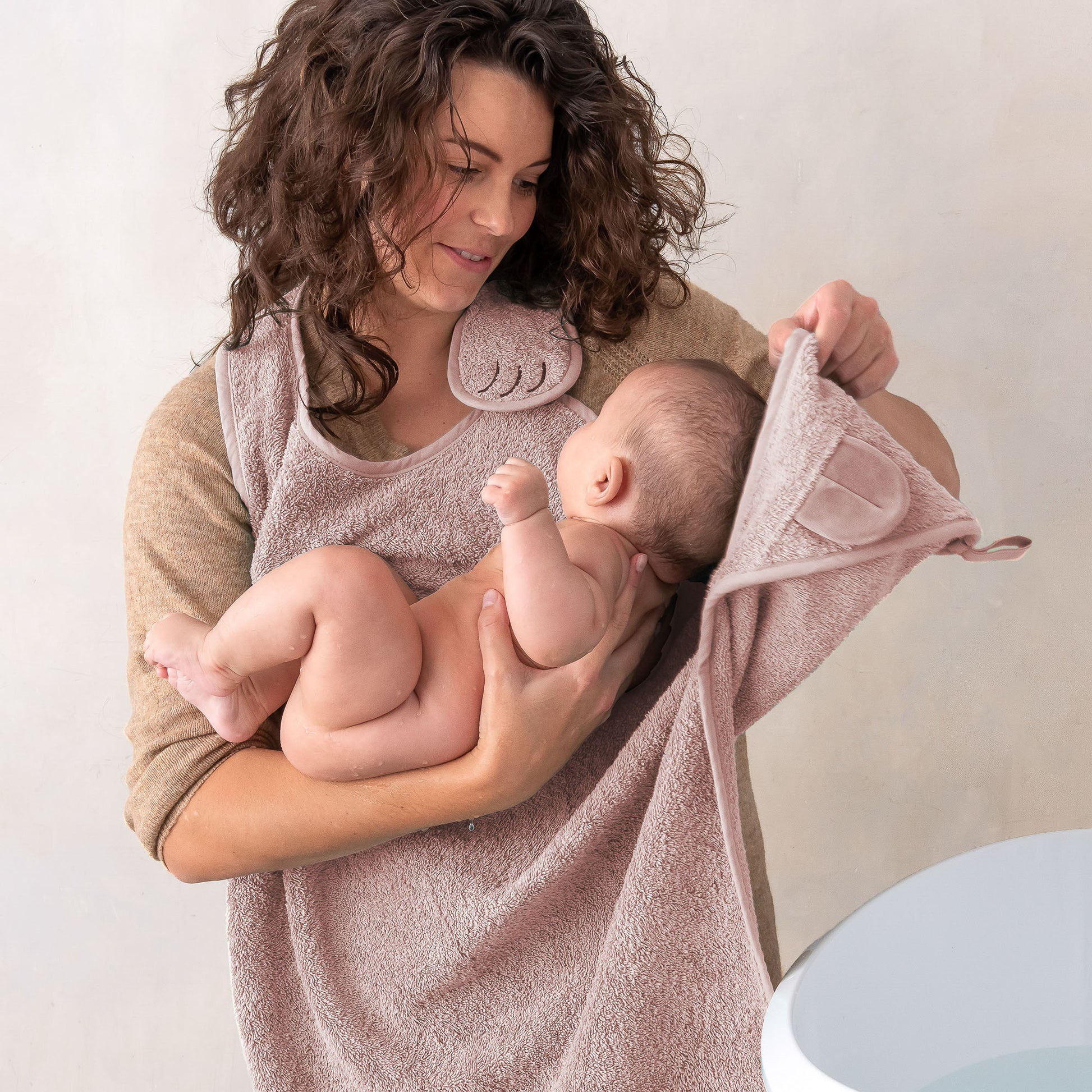 Met deze handige badcape wikkel je je baby in één vloeiende beweging lekker warm in, zónder zelf zeiknat te worden. Dankzij het slimme ontwerp met stevig klittenband heb jij je handen vrij om te focussen op wat echt telt: jouw tevreden, zachte, heerlijk ruikende mini.