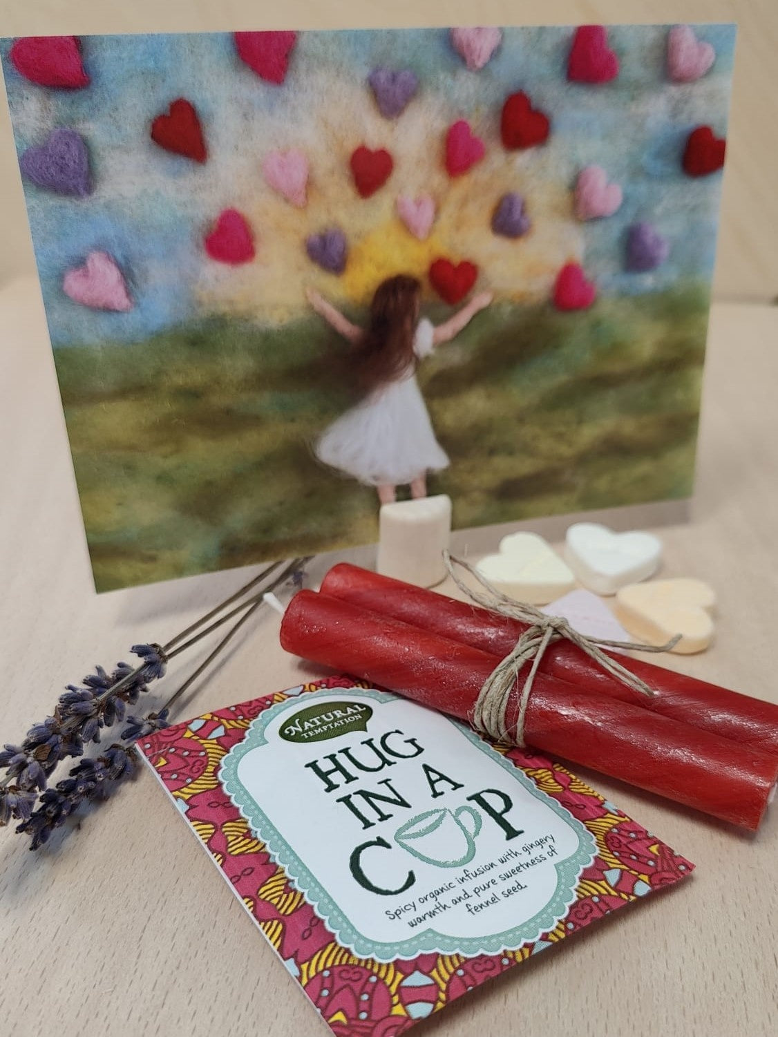 - een zakje biologische kruidenthee 'Hug in a cup'