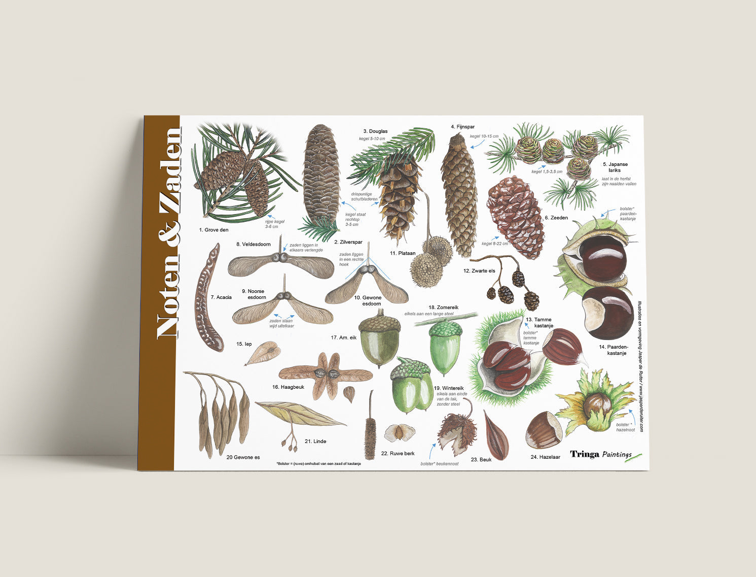 Jasper de Ruiter is een wildlife illustrator en maakt prachtige illustraties van alles wat leeft, woont en groeit in de natuur. Hij heeft een verzameling herkenningskaarten, zoekkaarten, minigidsen en boeken gemaakt om het ontdekken en onderzoeken in de natuur nog leuker en leerzamer te maken.