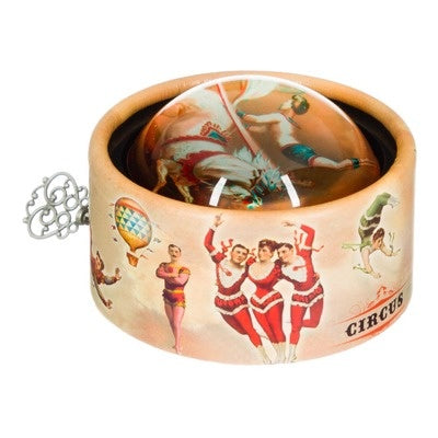 Stap in een mini-circus vol verwondering! Met een draai aan de sleutel geeft deze vrolijke muziekdoos je een magische circusshow! Terwijl 'Frère Jacques' klinkt, draait de glazen bol met een kleurrijk circusdecor langzaam in het rond.