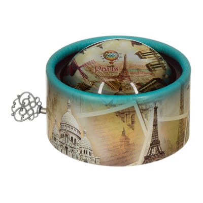 Stap in een mini-wereld vol verwondering! Met een draai aan de sleutel geeft deze vrolijke muziekdoos een magische Franse sfeer! Terwijl de klassieke muziek klinkt, draait de glazen bol langzaam in het rond.