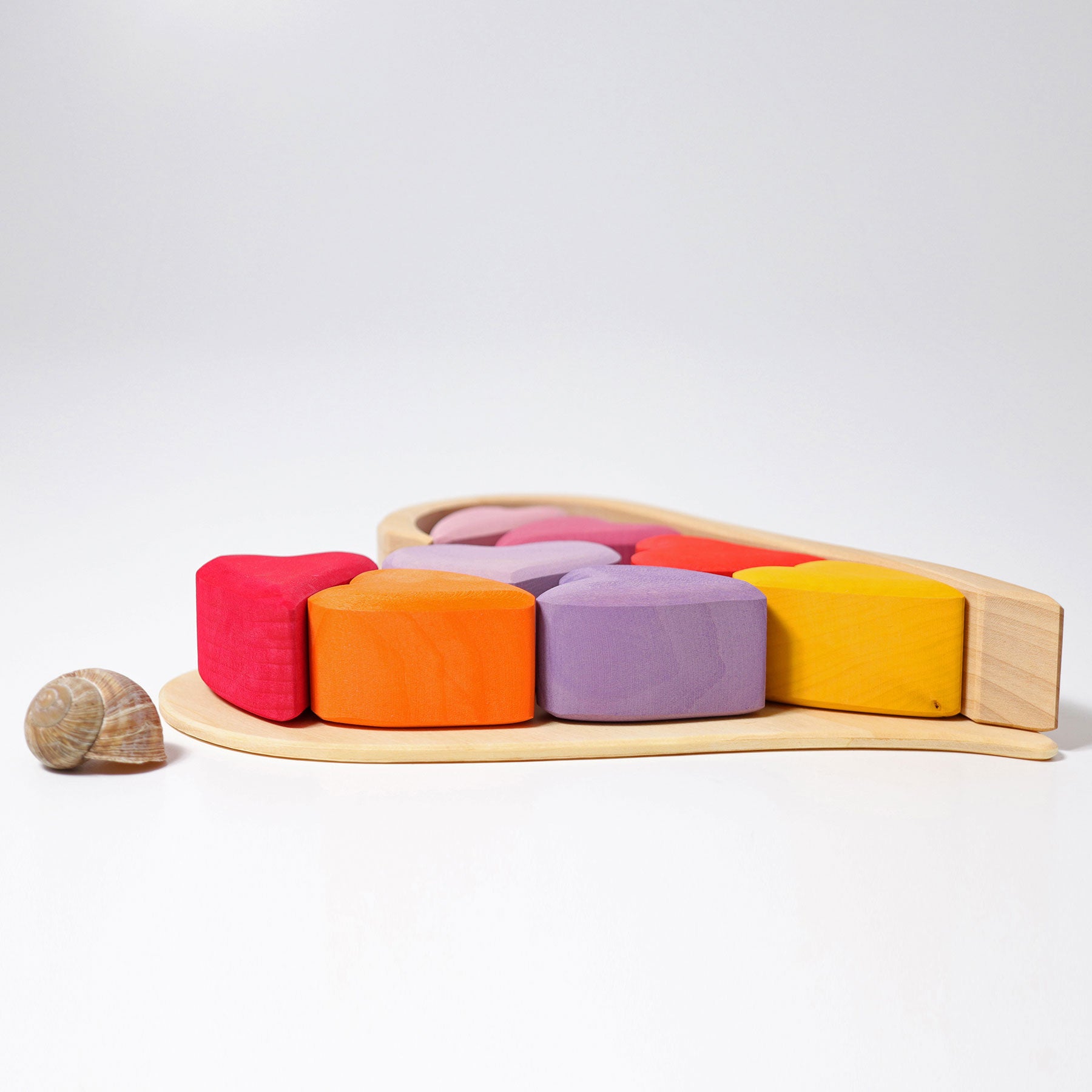 13-delig 2 bogen, een plateau en de harten in de kleuren rood, geel en paars.