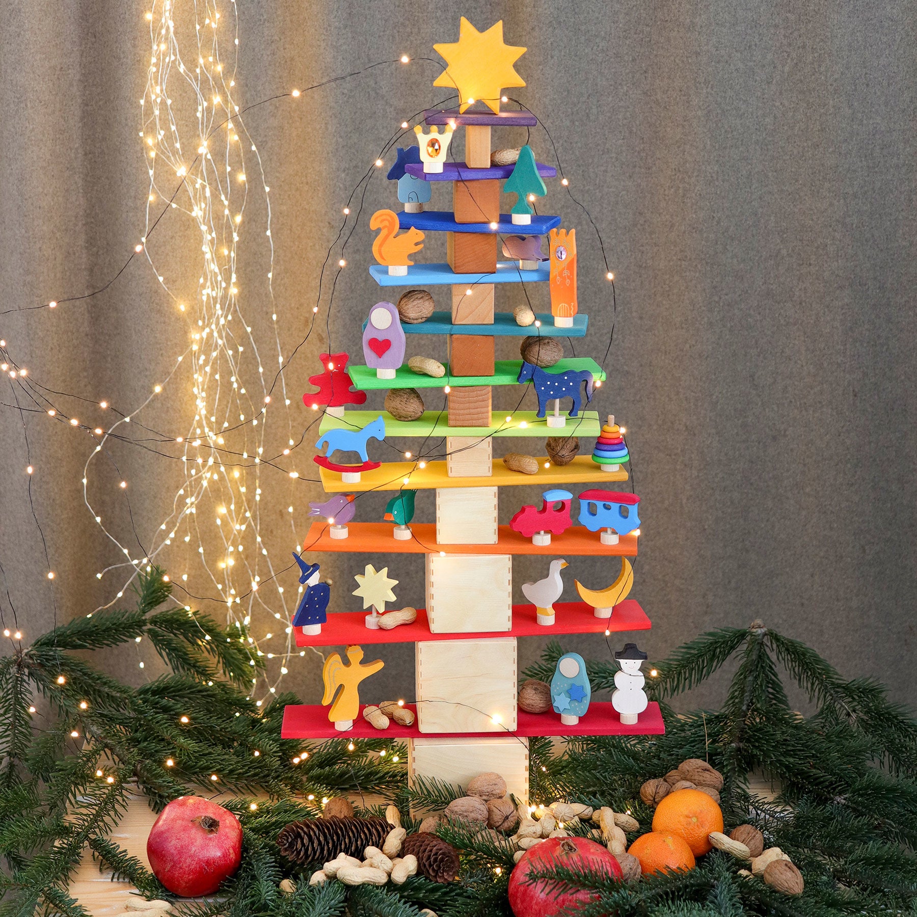 Materialen: lindehout, niet-giftige kleurbeits op waterbasis.