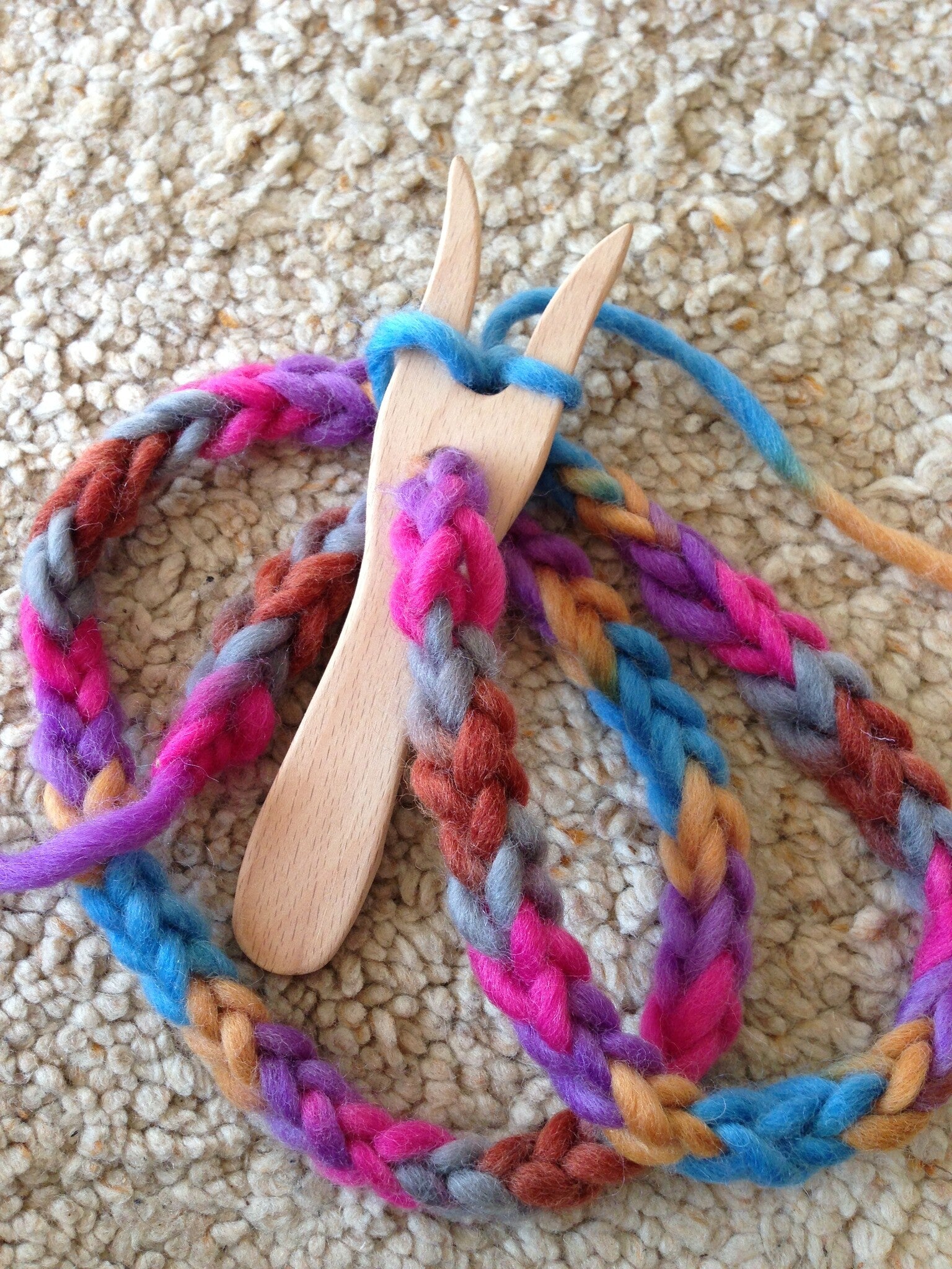 Werken met de breivork is een genoeglijk en rustgevend werkje voor kleine en grote kinderhanden. Maak mooie dikke vlechten met deze beukenhouten breivork. Voor een mooi resultaat en een lekkere volle vlecht, werk je het best met strengen witte of bont gekleurde wol!