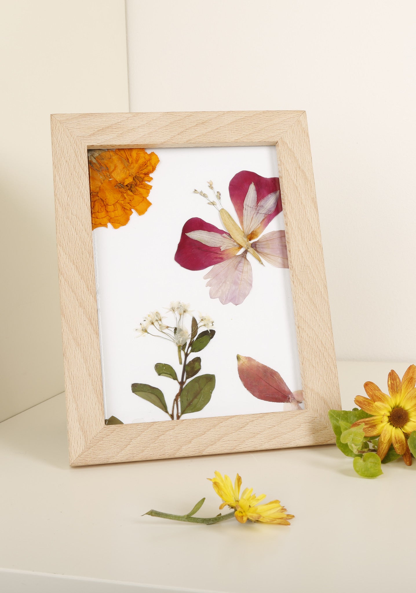 Met dit prachtige houten lijstje kun je je mooiste droogbloemen bewaren. Maak er een mooi kunstwerkje van. Voor het drogen van de bloemen kun je een bloemenpers gebruiken.