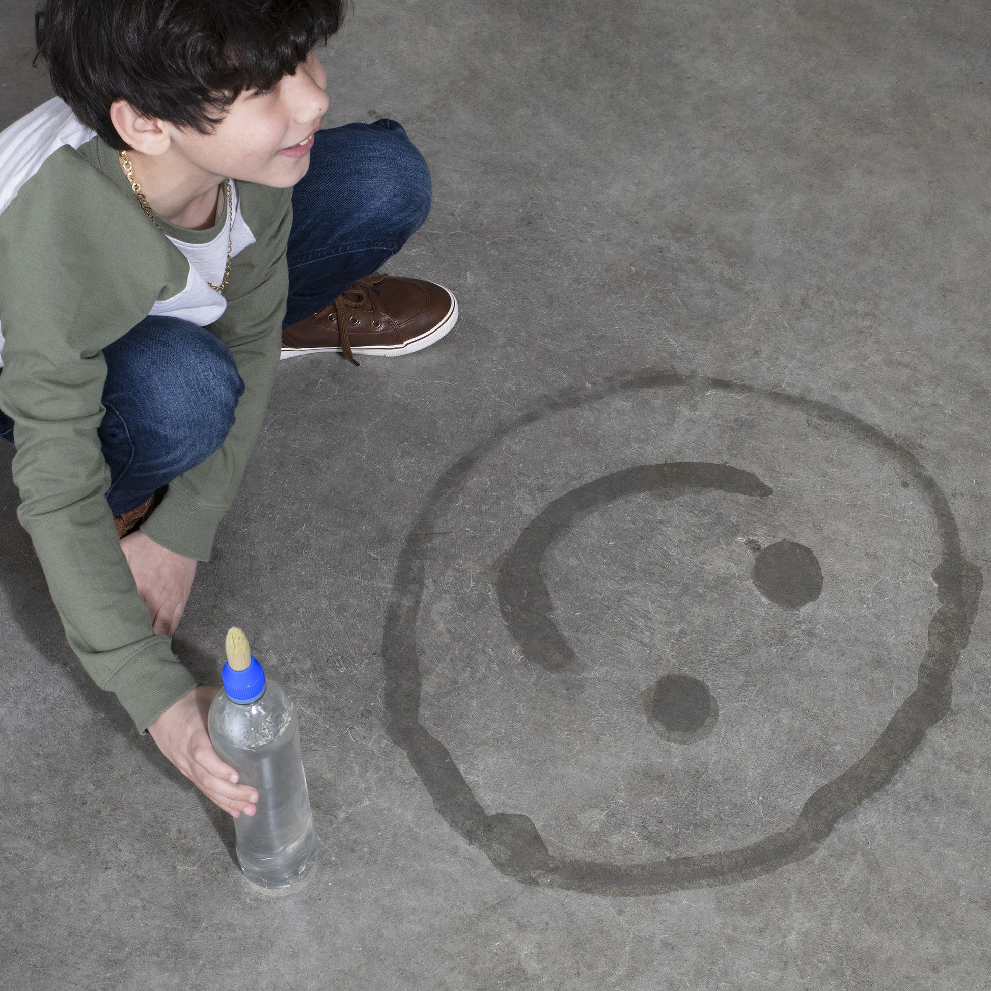 Een milieuvriendelijke manier om op de stoep of op muren te schilderen! Kan op elk formaat water- of frisdrankfles worden geschroefd. Vul de fles met water, schroef de kwast erop en maak de mooiste tekeningen!