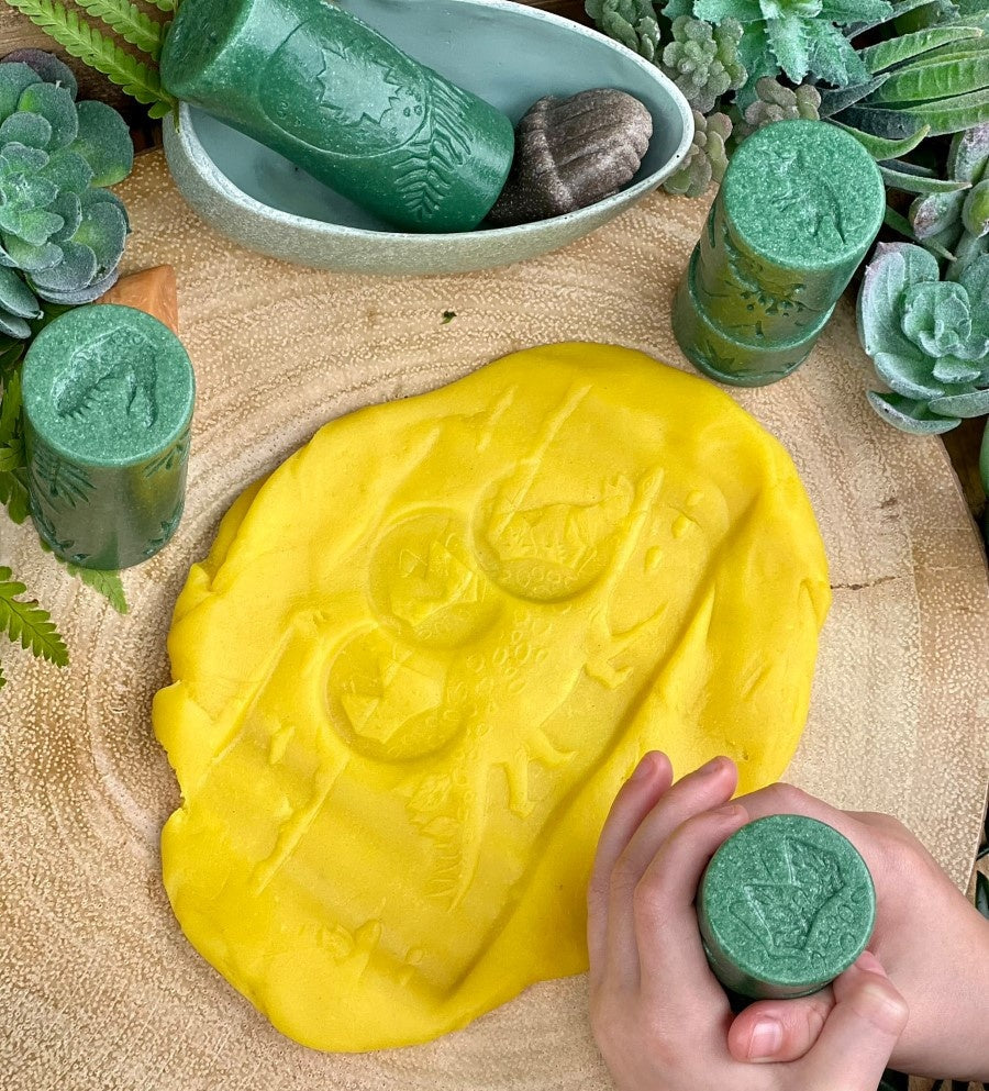 Deze speelse rollers zullen kinderen verblijden terwijl ze zich terug in de tijd wanen waarin de dino's nog leefden! Al rollend en stampend ontwikkelen ze belangrijke vroege taal en fijne motoriek. Rol in zand, speel deeg of klei en voeg creatieve attributen toe om voort te bouwen op het leerproces en het spel uit te breiden. De zes rollers hebben verschillende dinosaurus afbeeldingen.