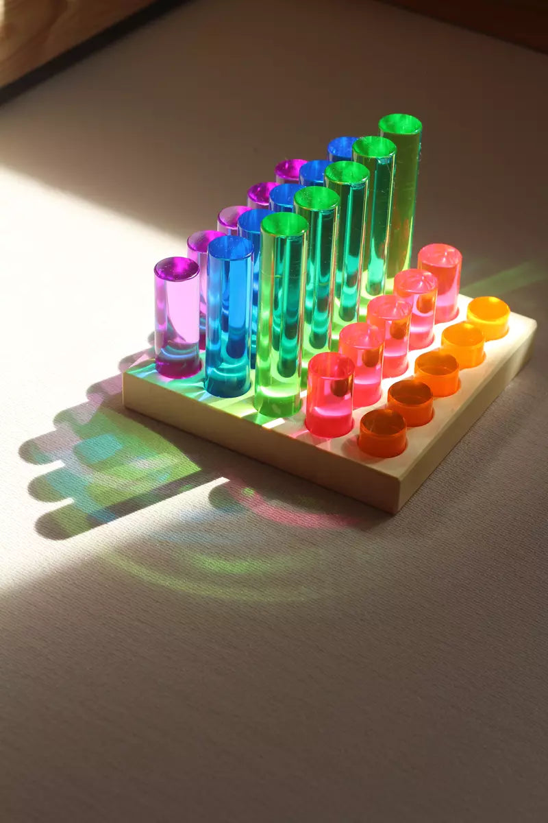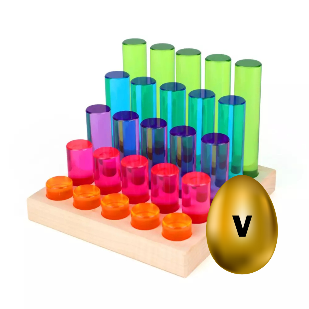 Ontdek de trappenset met doorschijnende cilinders. Deze cilinders brengen weer een heel andere dimensie aan bouwwerken en vragen weer een hele andere creatieve gedachte. Deze cilinders zijn een constructiehulpmiddel waarmee kinderen op een speelse manier de basisprincipes van geometrische vormen kunnen ontdekken.