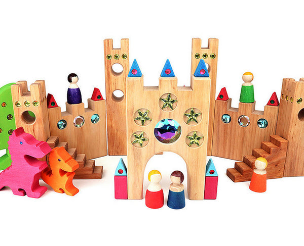 Een prachtige blokkenset met verschillende glitterblokken die naar hartenlust kunnen worden gebruikt voor het bouwen van de mooiste kastelen.